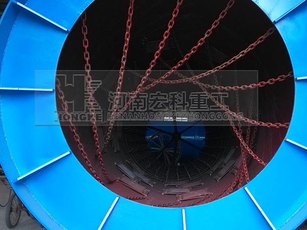 制革污泥經由專用加料機進入烘干機內,被轉動的筒壁上的特殊設計的箅板和抄板抄起到頂部落下,在下落的過程中經過強力打散裝置的打散破碎。大塊物料在反復抄起落下的過程中,不斷被打碎成小顆粒,在干燥機前部,采用高強度輻射傳熱技術快速干燥物料,將物料干燥成為無粘度的小顆粒,而后進入降速干燥段,熱風與物料進行傳熱和傳質,完成干燥過程,達到要求的水分排出;細粉由收塵裝置收集。尾氣可經處理完全達到環保排放要求。